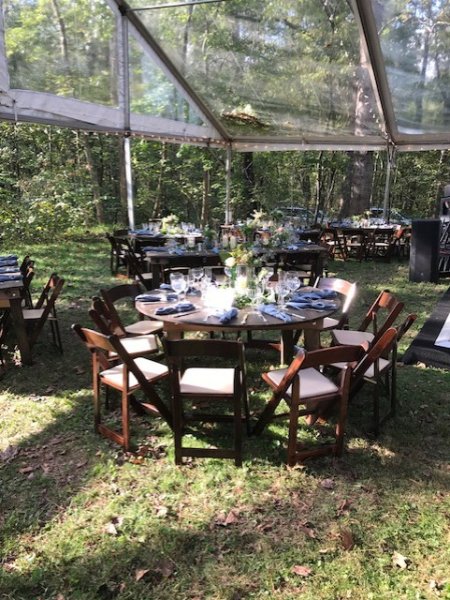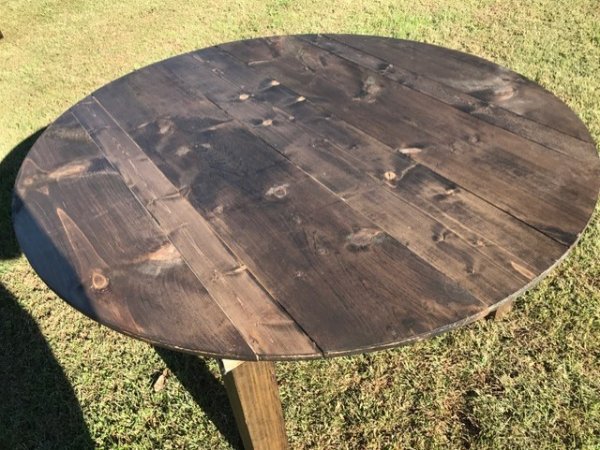 These beautifully made round tables are perfect for any event or for your home. Legs can either fold or they can be standard legs. Stain color options available.