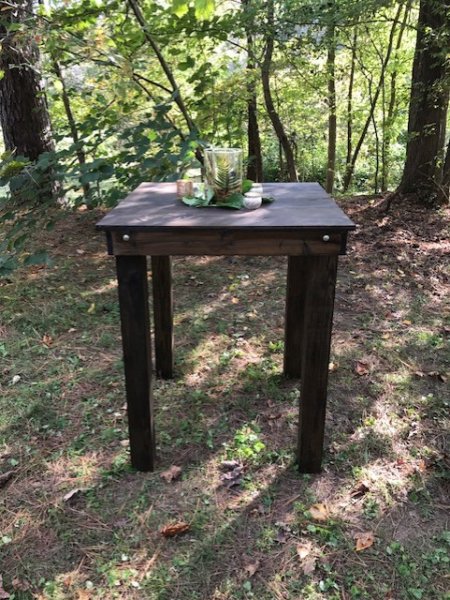 These tables are perfect for any event or party space. These beautiful cocktail tables can be round or square tops all finished with a poly. Stain options available.