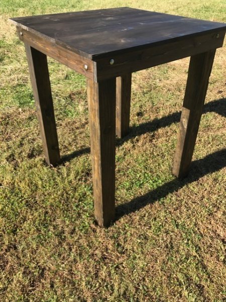 These tables are perfect for any event or party space. These beautiful cocktail tables can be round or square tops all finished with a poly. Stain options available.
